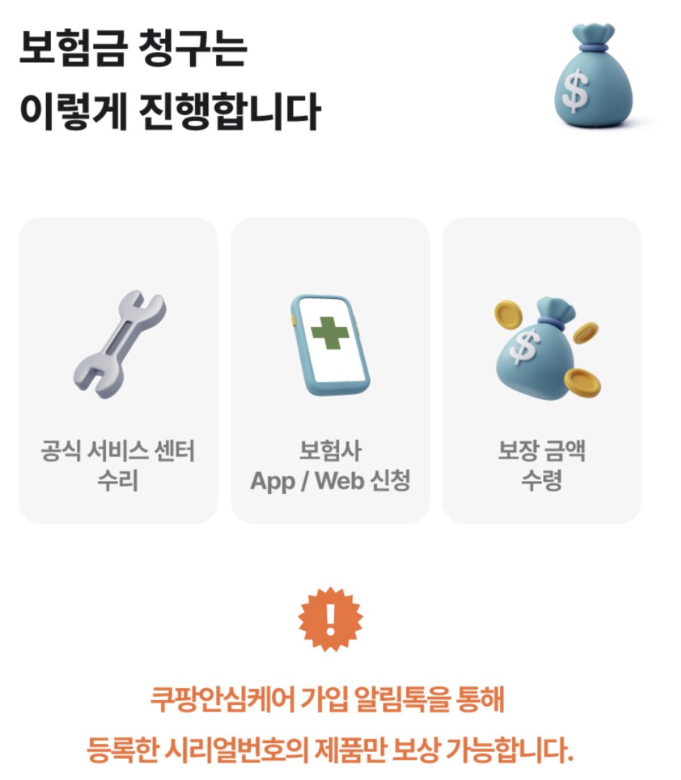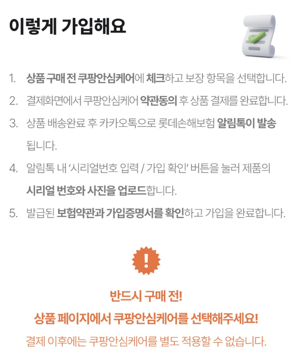 쿠팡 안심케어 가입시 유의사항
